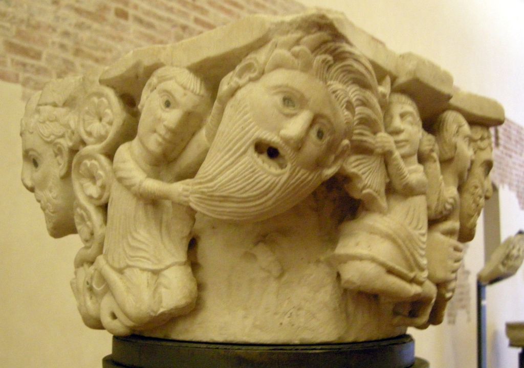 Tuttavia, è possibile leggere il programma figurativo in modo diverso. Più che una semplice funzione protettiva, il capitello potrebbe proporre un modello morale: Cristoforo si salva perché accoglie il peso di Cristo e ascolta i suoi consigli, mentre chi si lascia trascinare dalle tentazioni – rappresentate con forza espressiva nelle altre scene – finisce sopraffatto dal male.