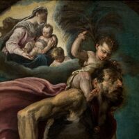 Mettendo insieme due quadri di Tiziano, Jacopo da Bassano a Venezia crea il suo san Cristoforo. L’originale. copiato in tutta Europa, è a Cuba.